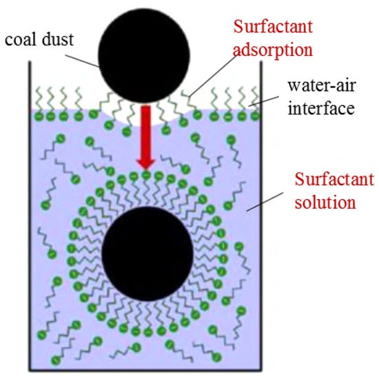 - Xu, C.; Wang, D.; Wang, H.; Ma, L.; Zhu, X.; Zhu, Y.; Zhang, Y.; Liu, F. Experimental investigation of coal dust wetting ability of anionic surfactants with different structures. Process. Saf. Environ. Prot. 2019, 121, 69–76. [Google Scholar] [CrossRef]