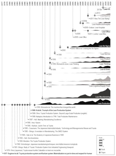 As already pointed out, the expression “lean production system” was coined by Krafcik in 1988 [23]. The seminal and best-selling book, The Machine that Changed the World [21], popularized the term “lean production”; and earlier similar expressions were completely abandoned (with the only exception being just-in-time, which survived in the supply chain literature until now).