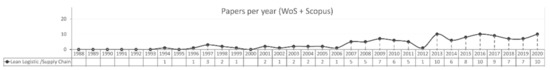 - Garcia-Buendia, N.; Moyano-Fuentes, J.; Maqueira-Marín, J.M.; Cobo, M.J. 22 Years of Lean Supply Chain Management: A science mapping-based bibliometric analysis. Int. J. Prod. Res. 2020, 59, 1901–1921. [Google Scholar] [CrossRef]