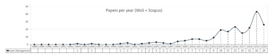 As a consequence, the management concept of lean has spread profusely throughout industry and services over the last 40 years [3]. A huge amount of research is now available for scholars and practitioners, with the present work having identified 4962 academic papers with “lean” in the title and “lean manufacturing” generating 8,910,000 results through a Google search.