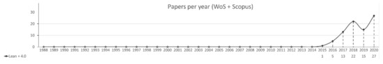 In 2015, The Analysis of Industry 4.0 and Lean Production [48] presented the first comparative study between LP and I4.0. With 17 papers published in the last 5 years, the interrelationship between LP and I4.0 has clearly awakened new interest in this research field [49,50].