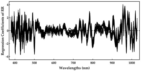 As RR was shown to be the best method, we analyzed the most important spectral regions for this model. Figure 7 presents the regression coefficients for the RR model, and important regions are characterized by higher magnitudes of the regression coefficients.