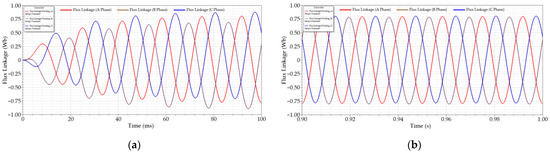 Simulation results of the winding flux linkage under the conventional equation. (a) ; (b) .
