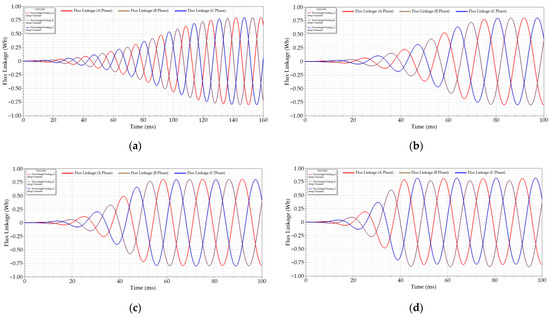 Simulation results of the winding flux linkage under the proposed equation. (a) ; (b) ; (c) ; (d) .