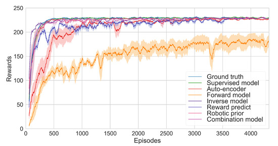 - Shelhamer, E.; Mahmoudieh, P.; Argus, M.; Darrell, T. Loss is its own Reward: Self-Supervision for Reinforcement Learning. In Proceedings of the 5th International Conference on Learning Representations, ICLR, Toulon, France, 24–26 April 2017. [Google Scholar]