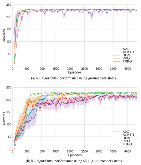 - Henderson, P.; Islam, R.; Bachman, P.; Pineau, J.; Precup, D.; Meger, D. Deep Reinforcement Learning That Matters. In Proceedings of the 32th AAAI Conference on Artificial Intelligence, (AAAI-18), New Orleans, LA, USA, 2–7 February 2018; pp. 3207–3214. [Google Scholar]