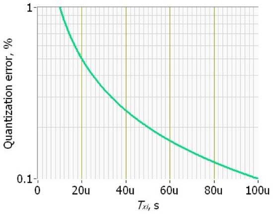 The quantization error in measuring the period of a variable frequency signal depends on the value of the converted period of the signal [29]. The quantization error δk can be calculated from the dependence: