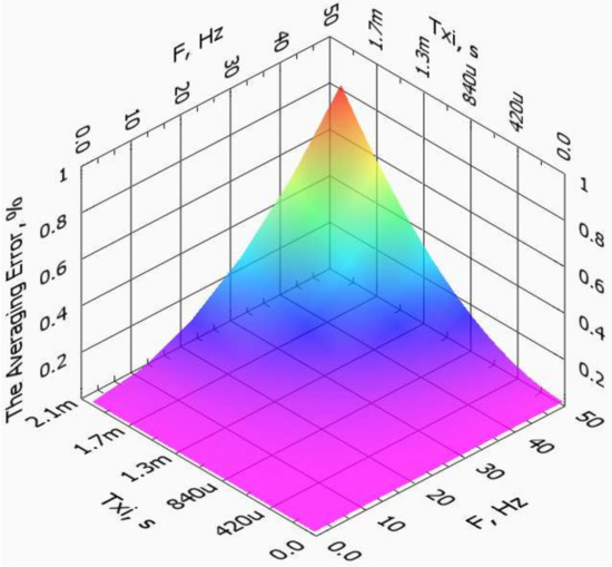 where F is the frequency of the signal x(t). This relationship shows that the averaging error depends on the value of the period Txi and the frequency F. The error value increases with the increase of both of these parameters.
