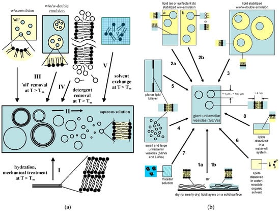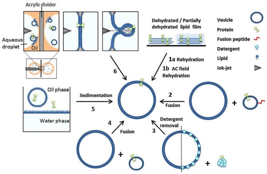- Jørgensen, I.L.; Kemmer, G.C.; Pomorski, T.G. Membrane protein reconstitution into giant unilamellar vesicles: A review on current techniques. Eur. Biophys. J. 2017, 46, 103–119. [Google Scholar] [CrossRef]
