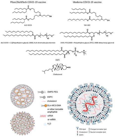 The aggregation behavior of biological amphiphilic lipids in the presence of water as a function of water content and temperature has been the subject of numerous fundamental investigations over the last couple of decades. Binary and ternary phase diagrams were determined for many lipid/water systems to understand the situation at thermodynamic equilibrium. Furthermore, methods were elaborated for the reproducible preparation of metastable aqueous lipid dispersions, and their physico-chemical properties were investigated in great detail. Based on the many results that have been obtained from such studies, innovative applications emerged over the years, resulting not only in useful research tools, for example, as biomembrane model systems, but also in various lipid-based commercial products. One of the recent successes is the development of lipid nanoparticle (LNP)-based siRNA delivery systems [1,2] and COVID-19 vaccines containing as active ingredient a nucleoside-modified mRNA coding for the spike proteins of the COVID-19 virus (‘CO’ stands for corona, ‘VI’ for virus, and ‘D’ for disease) [3,4,5].