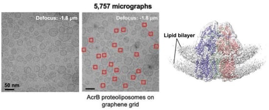 - Yao, X.; Fan, X.; Yan, N. Cryo-EM analysis of a membrane protein embedded in the liposome. Proc. Natl. Acad. Sci. USA 2020, 117, 18497–18503. [Google Scholar] [CrossRef]