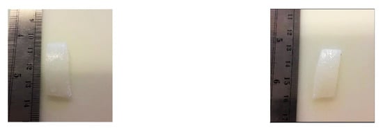 No compatibility issue was detected between the SA–PA and the encapsulation material. However, a compatibility study on pure stearic and palmitic acid and various plastics, including polypropylene, underlined the plastic swelling issue, possibly leading to its mechanical resistance degradation []. Some caution should then be taken when conducing the experimental campaign on the prototype, monitoring the nodules’ integrity.