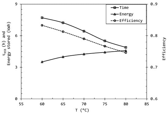 Flow rate and inlet temperature influence on the TES storage time and efficiency.