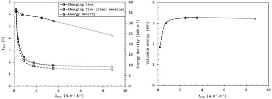 To assess the TES system’s performance, the stored energy (latent EL and sensible ES) are determined with Equation (2).