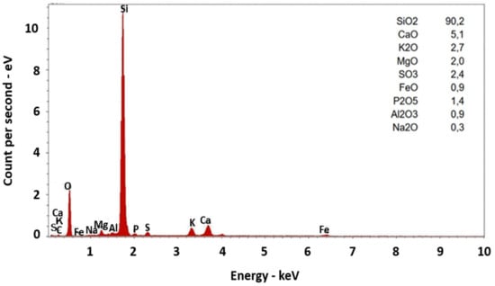 The phases in the resulting ashes were determined by X-ray diffraction (XRD) apparatus (Malvern Panalytical GmbH, Kassel, Germany) equipped with Ni-filtered, Cu-Kα radiation (λ = 1.54 Å). The chemical composition spectrum of the ash samples was calculated using the Energy-dispersive X-ray fluorescence spectroscopy (EDX) (Bruker, Massachusetts, USA).