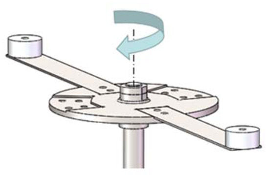 In each test, two cylinders were mounted symmetrically on the rotor test stand, and the model samples rotated clockwise. The computer models are shown in Figure 4. In the present study, the radius of the rotor test stand was designed as 0.3 m, which was determined according to the outlet size of the wind tunnel and previous calibrations of the icing wind tunnel [26]. The rotor test stand is driven by a three-phase asynchronous motor, and the rotational speed was accurately modulated by a variable-frequency drive (VFD).