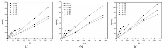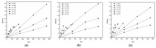 The variations of the stagnation point thicknesses and the dimensionless stagnation point thicknesses with icing time under the different TSRs are shown in Figure 11 and Figure 12.