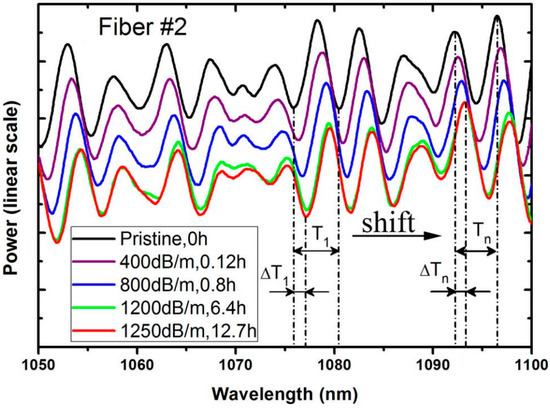 In 2010, Ye et al. [28] conducted high-precision measurement and analysis of RIC caused by light aging and TB in ytterbium-doped fiber based on the modal interference method. PD-induced RIC was positive at the ytterbium lasing wavelengths near 1080 nm, and it approached a saturated level, which was in the order of 10−6~10−5 for the tested fiber samples.