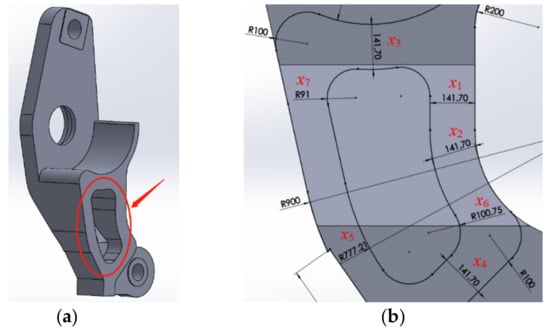 Under the requirement of deformation and strength, the optimal design goal of the lower rocker arm is to make its mass as small as possible. Therefore, the objective function is the mass of the lower rocker arm, which can be expressed as follows.