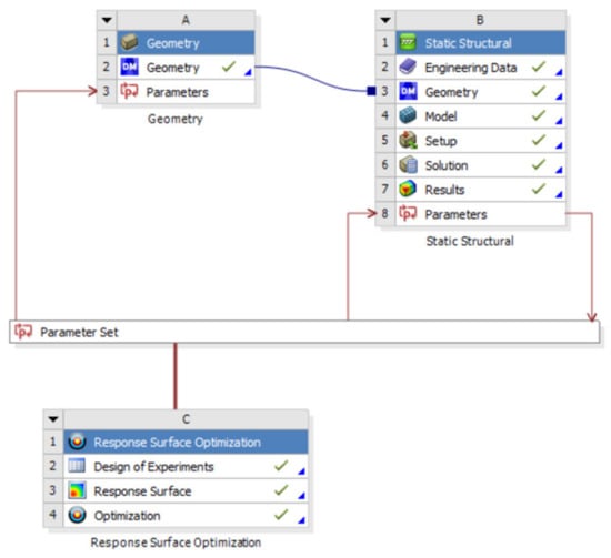 The response surface offers high accuracy and good prediction performance, and can study the interaction between several random variables [13,14]. Optimize the experimental design through the steps outlined in the Design of Experiments section; the design scope is shown in Table 1. After setting the parameters, 25 groups of experimental design points are updated, and the response results of the experimental design points are shown in Table 2 [15]. Parameter P1 corresponds to x1, P5 corresponds to x5, P6 corresponds to x6, and P7 corresponds to x7. Parameter P8 is the total mass of the lower rocker arm, P9 is the maximum stress, and P10 is the maximum displacement.