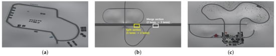 CarMaker simulation roads for dataset generation: (a) DGIST Campus environment. (b) Highway environment. (c) Urban environment.