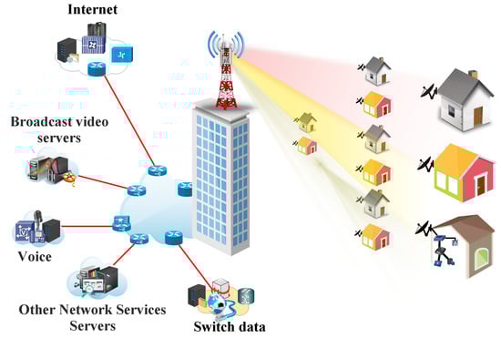 In order to attend to the challenges, there have been significant research efforts on solutions that are capable of delivering broadband services at fiber-like/fiber-grade speeds with low latency, while employing wireless mobile technology instead of the traditional fixed-line or cable technology. One of such promising technologies capable of delivering high-speed wireless internet access/services is the fixed wireless access (FWA) [8,9]. In addition, the fifth-generation (5G) network is envisaged to support a broad range of heterogeneous services; nonetheless, enhanced mobile broadband (eMBB) and FWA services are anticipated to be the initial commercial applications [10,11]. No wonder that some providers such as Verizon, Starry, AT&T, and C Spire have been developing significant interests in the FWA for their business and service initiatives. Moreover, they have been using a range of technologies and spectrum bands for the target environments [12,13,14].