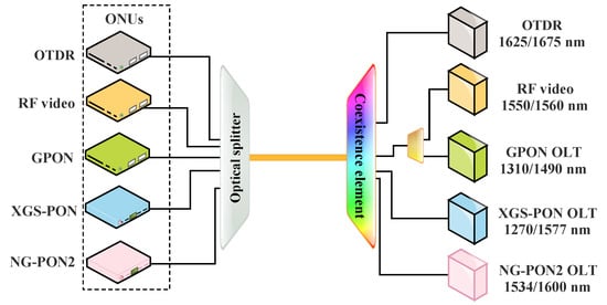 - TELNET Redes Inteligentes. WaveCEx: WDM Module for PON Coexistence- GPON, XGS-PON, NG-PON2, RF, OTDR; Wavecex Family: 180409 Data Sheet; TELNET Redes Inteligentes: Zaragoza, Spain, 2017; Available online: https://www.telnet-ri.es/wp-content/uploads/2018/04/DS_EQ_GPON_WaveCEx_EN.pdf (accessed on 12 September 2021).