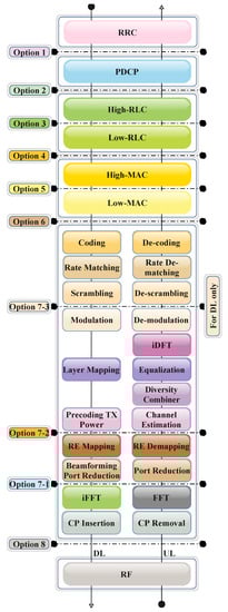 - Alimi, I.A.; Monteiro, P.P. Functional Split Perspectives: A Disruptive Approach to RAN Performance Improvement. Wirel. Pers. Commun. 2019, 106, 205–218. [Google Scholar] [CrossRef]