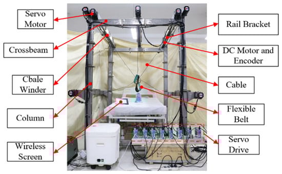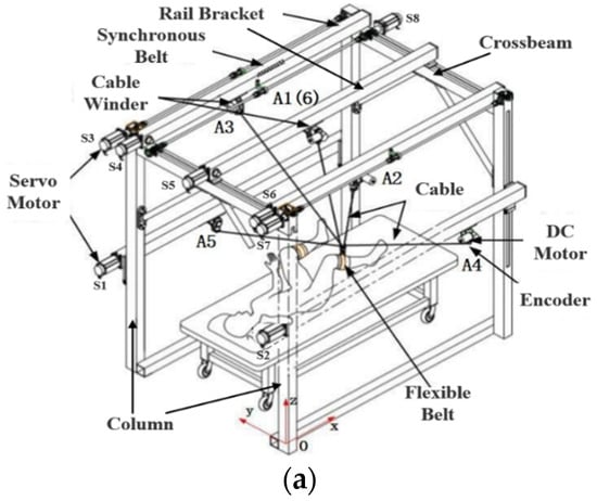 - Yang, Z.M.; Zi, B.; Chen, B. Mechanism Design and Kinematic Analysis of a Waist and Lower Limbs Cable-Driven Parallel Rehabilitation Robot. In Proceedings of the IEEE 3rd Advanced Information Management, Communicates, Electronic and Automation Control Conference, Chongqing, China, 11–13 October 2019; IEEE: Chongqing, China, 2019; pp. 723–727. [Google Scholar]
