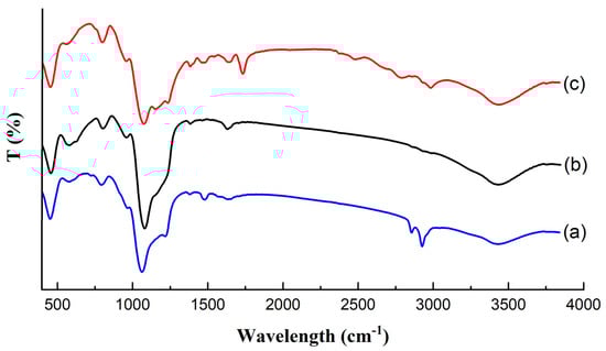 FT-IR spectra: (a) as-made Fe3O4@MSN; (b) Fe3O4@MSN-Br (without CTAB); (c) Fe3O4@MSN-PDEAEMA.