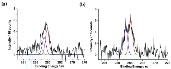 C1s XPS spectra: (a) Fe3O4@MSN-PDEAEMA; (b) Fe3O4@MSN-QPDEAEMA.