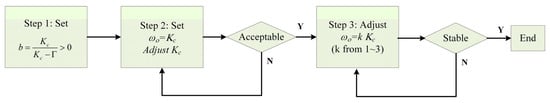 As they are in Equations (15) and (16), the parameters in the closed-loop transfer function are , and . In NMRRS, the bandwidth of the controller (determined by and ) is ten times greater than . Thus, the controller parameters play the dominant role in the synchronous transient processes. Two strategies were proposed here: