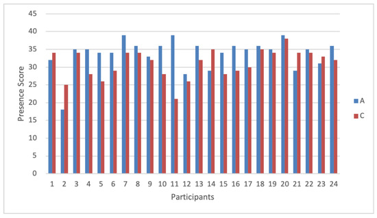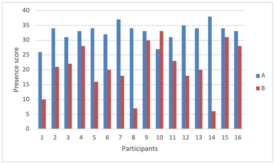 - Witmer, B.G.; Jerome, C.J.; Singer, M.J. The factor structure of the Presence Questionnaire. Presence Teleoperators Virtual Environ. 2005, 14, 298–312. [Google Scholar] [CrossRef]