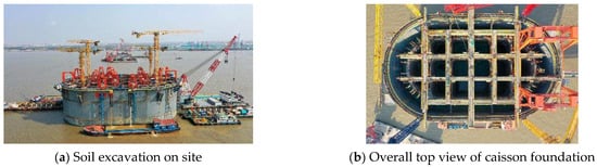 In recent years, with the development of economy and transportation construction, the number of bridge planning and construction in China is increasing, and the bridge span is constantly refreshing the world record. Caisson foundation has the advantages of high bearing capacity, good integrity, big stiffness, and small area occupancy [1]. Therefore, it is widely used in large-scale bridge construction. With the requirement improvement of bearing capacity and settlement of large-sized bridge engineering, the caisson foundation is developing towards to large size and deep sinking elevation. Ensuring the safe sinking has been the key issue to sinking construction of caisson foundation. The distribution characteristics of end resistance is different from that of small and medium-sized caisson foundation, which inevitably caused different controlling method of sinking construction for different size caisson foundation [2]. However, at present, the sinking construction of caisson foundation by soil excavation mostly depends on engineering experience, the distribution of earth pressure is not clear during soil excavation, which caused poor controllability of sinking process [3,4,5]. The soil excavation only relying on engineering experience has seriously affected the safety of the sinking construction and the reliability of caisson foundation structure, and the sinking process by soil excavation needs to be further studied.