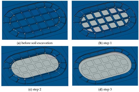 Figure 8. Schematic diagram of soil excavation steps at the first stage.
