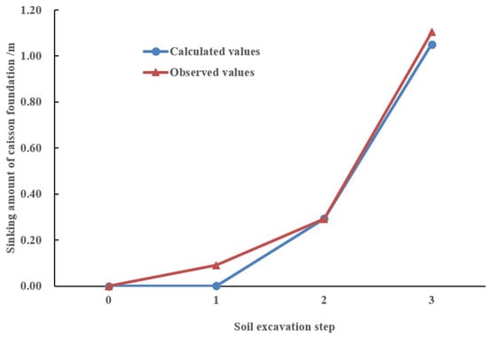 Figure 11. Sinking amount corresponding to the step of soil excavation.