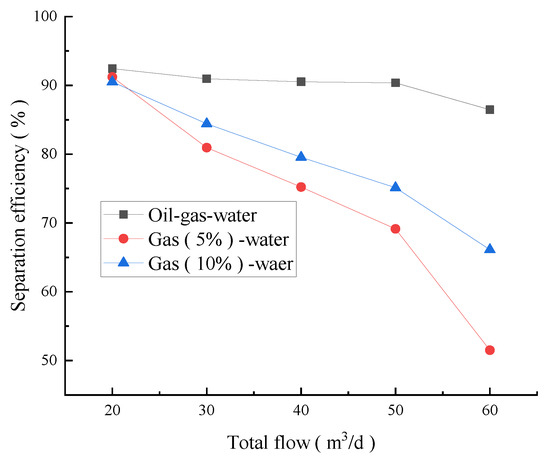 Gas–liquid separation efficiency at oil–gas–water multiphase flow.