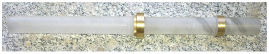 The central pipe’s body is made of plexiglass. The advantage of using this material is that it is non-conductive and strong, and therefore suitable for underground environments. The central pipe is shown in Figure 10. The processed experimental prototype is shown in Figure 11, where the outer diameter of the instrument is 28 mm, and the inner diameter of the flow channel is 10 mm.
