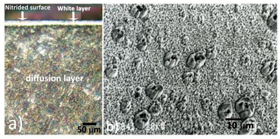 - Cerny, I.; Mikulova, D.; Furbacher, I. Fatigue Strength and Failure Mechanisms of Nitrided Small Parts of a 30CrMoV9 Steel. Mater. Manuf. Process. 2011, 26, 1–6. [Google Scholar] [CrossRef]