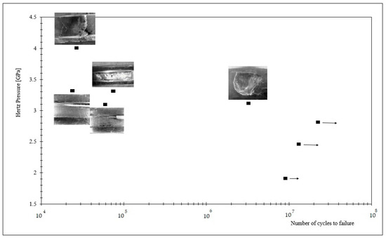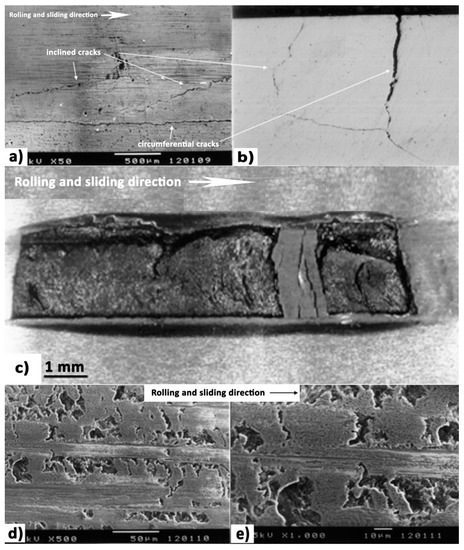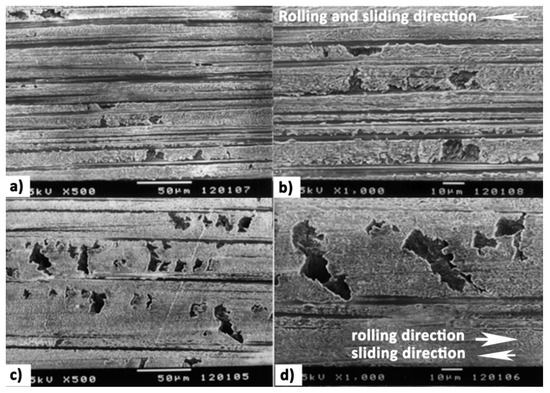 - Fujita, K. Surface fatigue failure of nitrided-hardened aluminium-chromium-molybdenum steel rollers under pure rolling and sliding-rolling contacts. Wear 1979, 53, 61–68. [Google Scholar] [CrossRef]