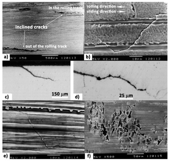 - Le, M.; Ville, F.; Kleber, X.; Buffière, J.-Y.; Cavoret, J.; Sainte-Catherine, M.-C.; Briancon, L. Rolling contact fatigue crack propagation in nitrided alloyed steels. Proc. Inst. Mech. Eng. Part J J. Eng. Tribol. 2017, 231, 1192–1208. [Google Scholar] [CrossRef]