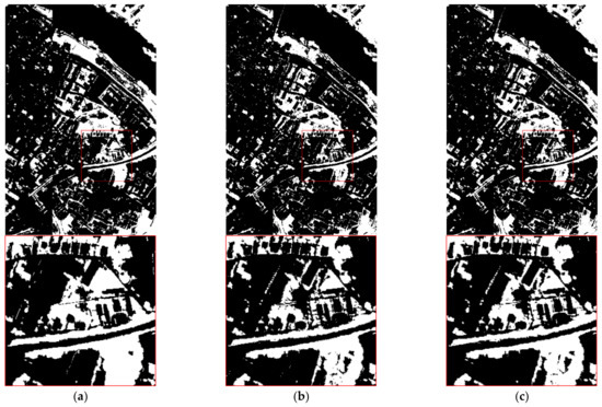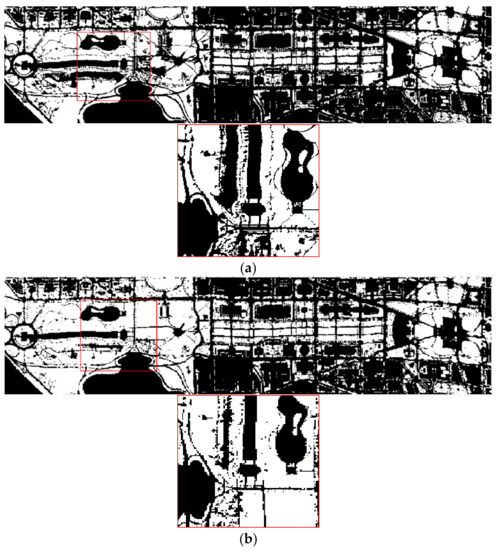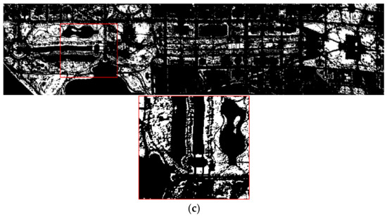 Among them, the wavelength of band11 is 480 nm belonging to the B band, and the wavelength of band94 is 895 nm, which belongs to the NIR band. The vegetation is extracted by BAND19, and the binarization results are shown in Figure 9: