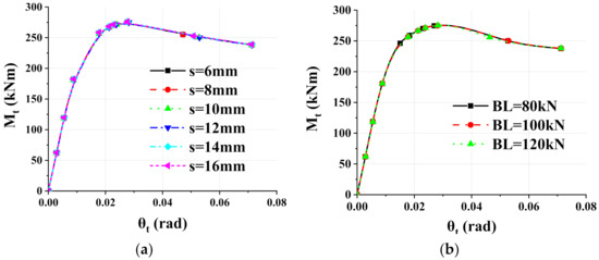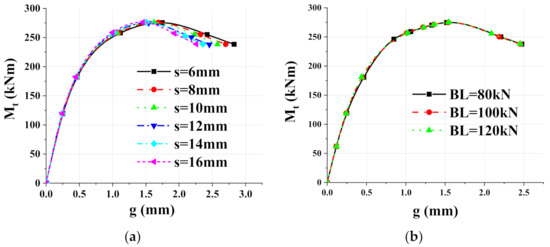 Moment-rotation curves: (a) Thickness of side plate; (b) Bolts preload.