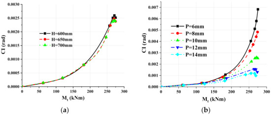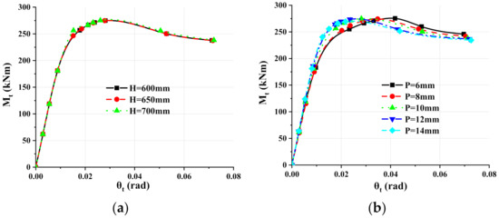 Moment-rotation curves: (a) The height of inbuild component; (b) The thickness of inbuild component.