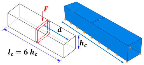 According to the previous parameter analysis and the research in RHS joints [31] area, the main factors affecting the mechanical properties of the converged section component include the height () and thickness () of the column, the thickness of the beam end plate (), the length of the loading area (beam flange width ()). Moreover, one of the main features of intramodule connection is that the joint panel is very close to the column open end. It will lead to the distance (d) between the converged section model and the column end becoming an important influencing parameter. Based on the above reasons, this paper used the fitting method to obtained the force–displacement relationship of the converged section component.
