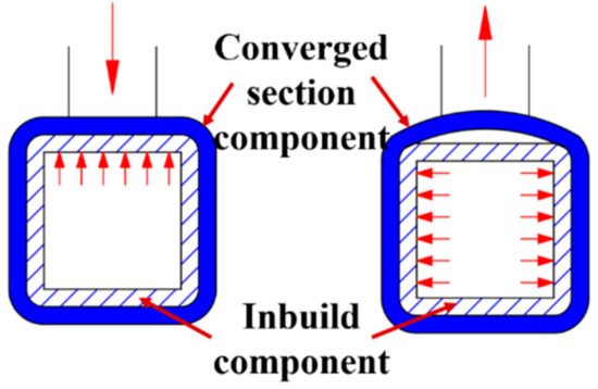 From above analysis, the interaction mechanism under compression between the converged section and the inbuild component was conformed to parallel springs as shown in Figure 39. The ( = I, = II) represents the force–displacement relationship between “I” and “II”, which conforms to (12). The represents the force–displacement relationship of the inbuild component which conforms to (15) without the influence of . and were the shape parameters of the inbuild component. and were the height and thickness of the inbuild component.