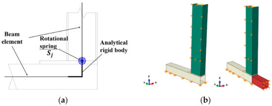According to the above analysis, intramodule connections are usually considered to be rigid. The selection of stiffness and strength parameters of intermodule connections mainly depends on traditional design assumptions and experience. Moreover, due to the construction complexity of modular connections, it is difficult to relate the mechanical properties of real connections to the simplified model. The component method that adopted in Eurocode 3 [14] and Eurocode 4 [15], also known as mechanical model or spring model. It describes the mechanical behavior of connections through a series of rigid and elastic elements. This method has wide applicability and can be extended to all connection structures theoretically. Considering the flexibility of the component method, many researchers have been dedicated to developing a component method for different types of connections [16,17,18]. Some of the studies have also investigated connection mechanical properties under various complex loading conditions using the component method, such as cyclic loading [19], axial load-bending moment interaction [20,21] and fire [22]. However, there are a few component method studies for modular connections in the present study.