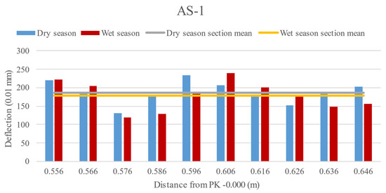 However, the AS-1 section showed greater dispersion in the data, which could be attributed to problems during the execution of the work, presenting over-compacted areas that reduce the average deflection of the section.