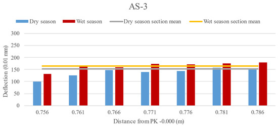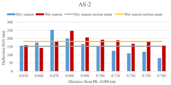 Figure 12, Figure 13 and Figure 14 show the mean deflection values measured in the dry and wet seasons for each section.