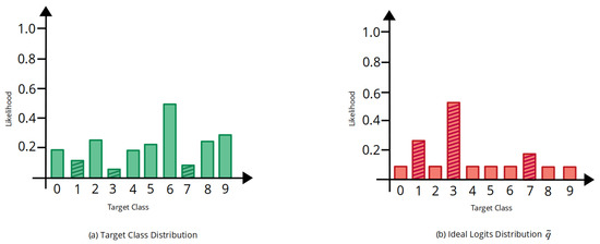 To enable us to maintain the correlation of magnitudes between weights across all classes, we choose to represent the ideal logit weights vector as a proper probability distribution. Therefore, to generate the weight vector as a probability distribution, we use the relative likelihood approach [56] (p. 64), a technique from the method; subjective determination of prior density. This technique rates the class probabilities relative to each other in terms of “most likely” and “least likely”. For multiclass problem settings, one of the classes could be chosen as the point of reference and the others compared to it in terms of the relative likelihoods such as half as likely, twice as likely, n times as likely, where , etc.
